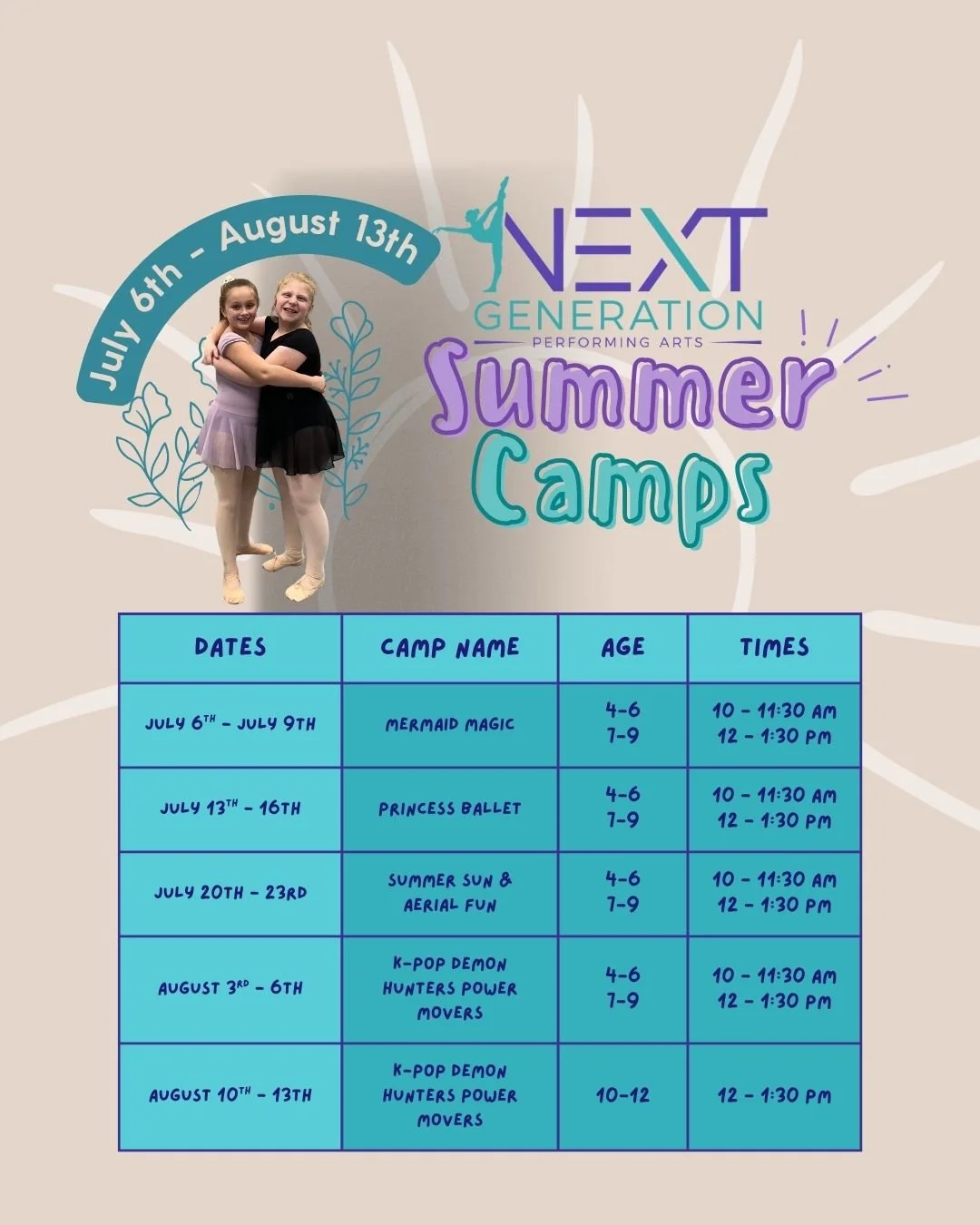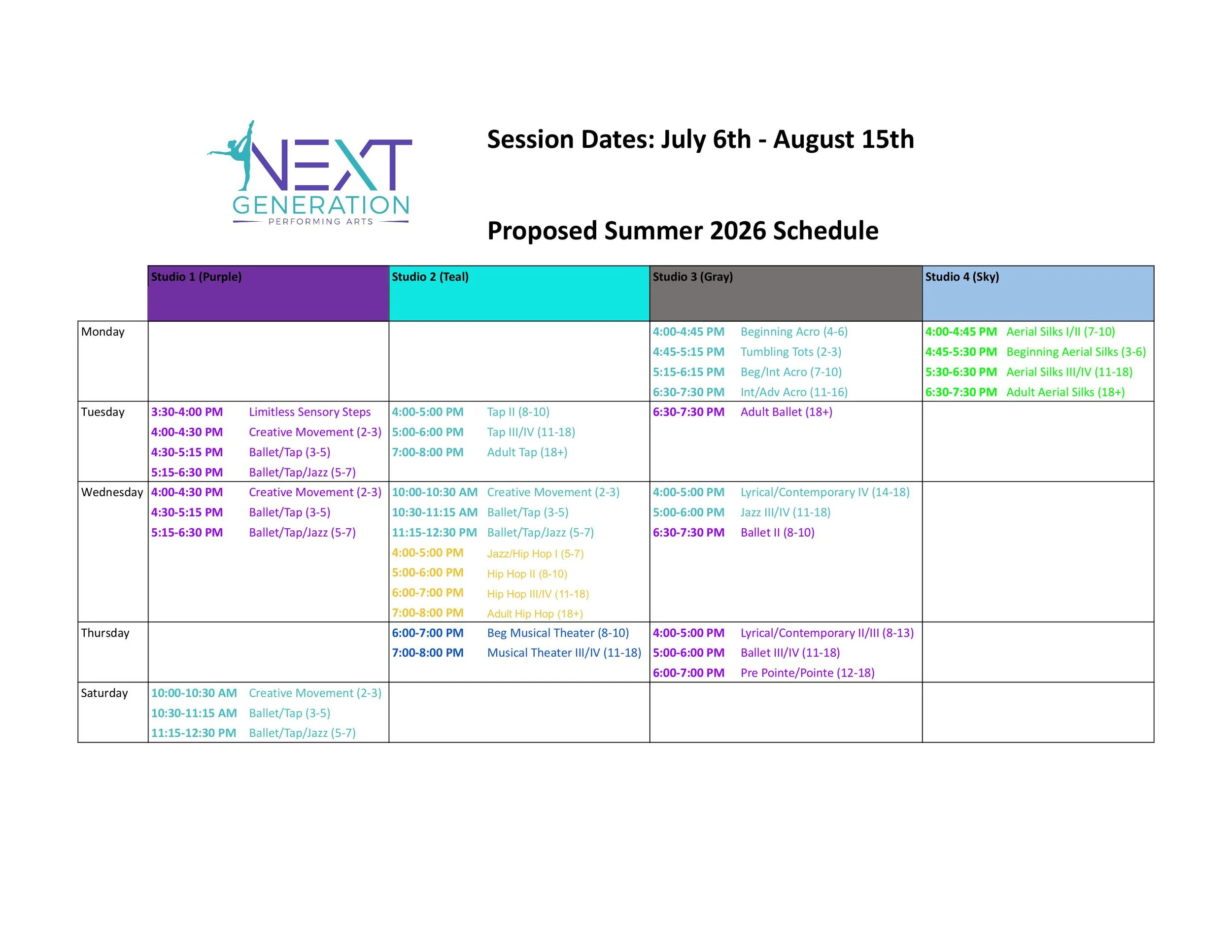 If you would like assistance with registering please call (360)503-0309 or email us at director@nextgenperformingart.com Print Summer Schedule